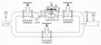 水力控制阀就是用水压控制的阀门,它由一个主阀(如图1所示)及其附设的导管、导阀、针阀、球阀和压力表等组成。根据使用目的、功能及场所的不同可演变成遥控浮球阀、减压阀、缓闭止回阀、流量控制阀、泄压阀、水力电动控制阀等。水力控制阀分隔膜型和活塞型两类,工作原理相同,都是以上下游压力差△P为动力,由导阀控制,使隔膜(活塞)液压式差动操作,完全由水力自动调节,从而使主阀阀盘完全开启或完关闭或处于调节状态。当进入隔膜(活塞)上方控制室内的压力水被排到大气或下游低压区时,作用在阀盘底部和隔膜下方的压力值就大于上方的压力值,所以将主阀阀盘推到完全开启的位置;当进入隔膜(活塞)上方控制室的压力水不能排到大气或下游低压区时,作用在隔膜(话塞)上方的压力值就大于下方的压力值,所以就会把主阀阀盘压到完全关闭的位置;当隔膜(活塞)上方控制室内的压力值处于入口压力与出口压力中间时,主阀阀盘就处于调节状态,其调节位置取决于导管系统中的针阀和可调导阀的联合控制作用。可调导阀可以通过下游的出口压力并随它的变化而开大或关小其自身的小阀口,从而改变隔膜(活塞)上方控制的压力值,控制主阀阀盘的调节位置。