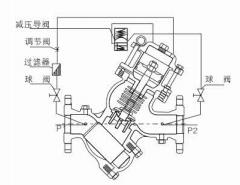 YQ98001过滤减压阀,是一种利用介质白身能量来调节与控制管路压力的智能型阀门。当阀门从进口端给水时,水流过针阀进入主阀控制室。出口压力通过导管作用到导阀上。当出口压力高于导阀弹簧设定值时,导阀关闭。控制室停止排水,此时主阀控制室内压力升高并关闭主阀,出口压力不再升高。当阀门出口压力降到导阀弹簧设定压力时,导阀开启。控制室向下游排水。由于导阀系统排水量大于针阀的进水量,主阀控制室压力下降。进口压力使主阀开启。在稳定状态下,控制室进水,排水相同,主阀开度不变,出口压力稳定。出口压力不因进口压力变化而改变。亦不因主阀出口流量的变化而改变,安全可靠的将出口压力维持在设定值上。该阀减压精确。性能稳定、安全可靠、安装调节方便,使用寿命长。可用于生活给水、消防系统及工业给水系统。